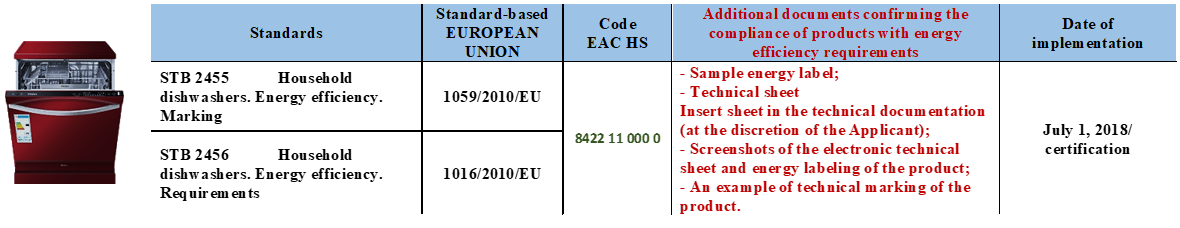 Confirmation of conformity energy efficiency of household appliances carried out on the basis of the Resolution of the Council of Ministers Republic of Belarus of October 21, 2016 No. 849"On some issues of conformity assessment in the National Conformity Assessment System of the Republic of Belarus"