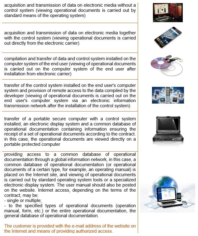 - the database of interactive electronic documentation should have a structure that allows the user to quickly access the necessary information. The database may contain textual and graphical information, as well as data in multimedia form (audio and video data). The requirements for the nomenclature and composition of information, as well as for the logical data model of the interactive electronic documentation database, should be regulated by regulatory documents for products of specific types of equipment, taking into account their specifics.