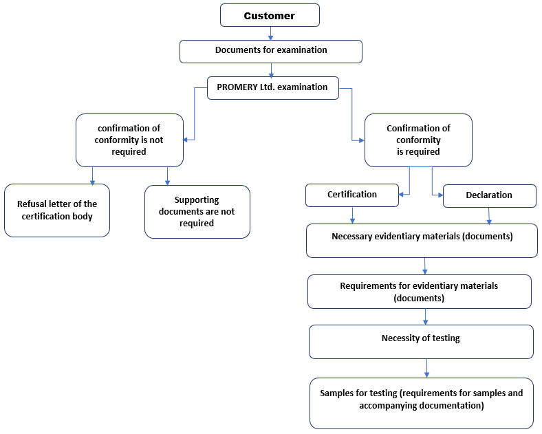 confirmation of the conformity of products to the extent not exceeding the requirements of technical regulations (of the Republic of Belarus and/or the Eurasian Economic Union (EAEU) and other regulatory legal acts;