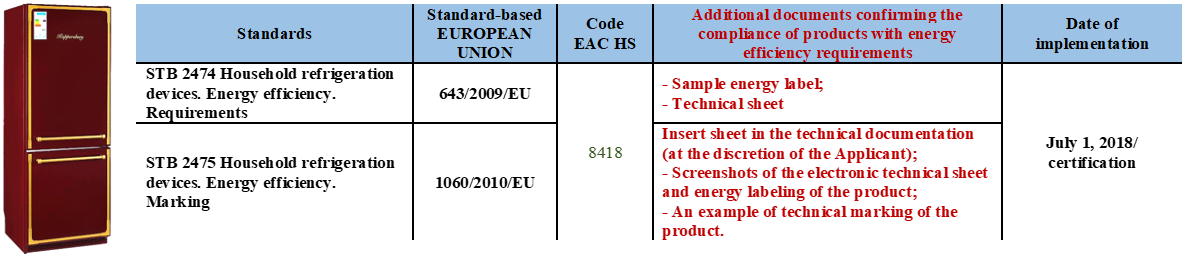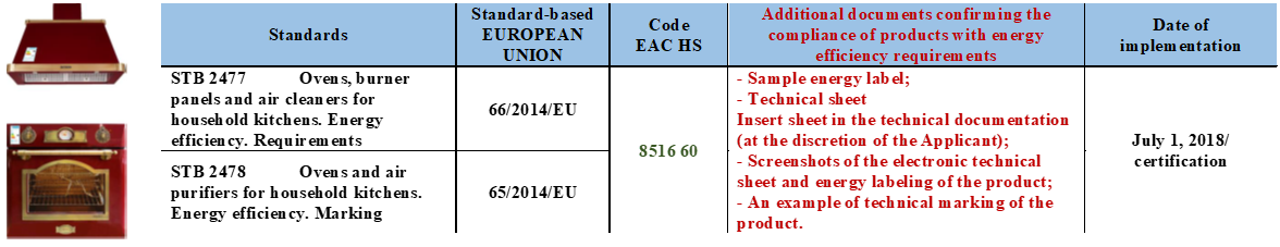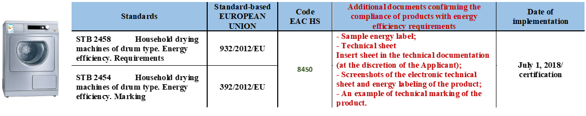 Confirmation of conformity energy efficiency of household appliances carried out on the basis of the Resolution of the Council of Ministers Republic of Belarus of October 21, 2016 No. 849"On some issues of conformity assessment in the National Conformity Assessment System of the Republic of Belarus"