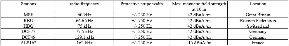 standard frequency and time signals to be protected in the 9-90 kHz and 119-135 kHz bands