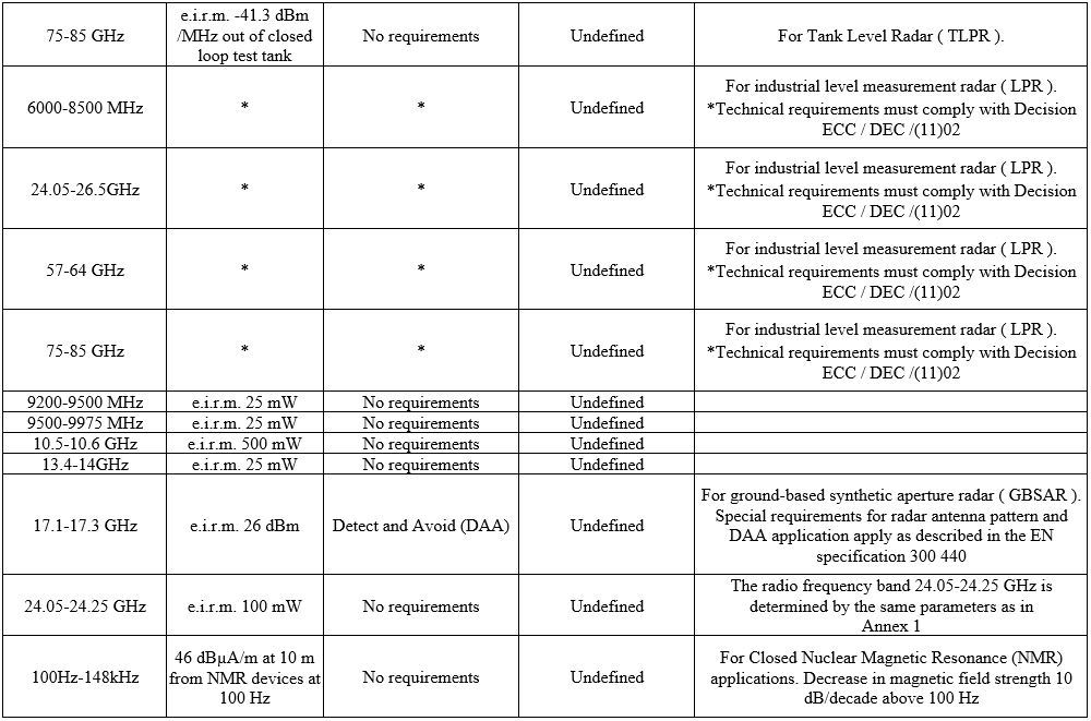 This Appendix also includes references to the General Rules for the Use of Ultra Broadband Systems(UWB),which have been developed primarily to allow telecommunication systems using UWB technology, as well as other types of radio systems, to operate in radio frequency bands below 10.6 GHz.