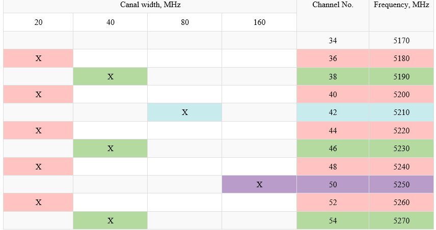 Preferred radio frequency channels for RADIO ELECTRONIC MEANS OF WIRELESS BROADBAND ACCESS Standards Group 802.11 (Wi-Fi)