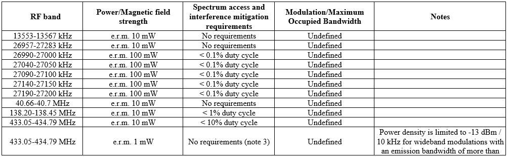 SRD Radio Frequency Requirements