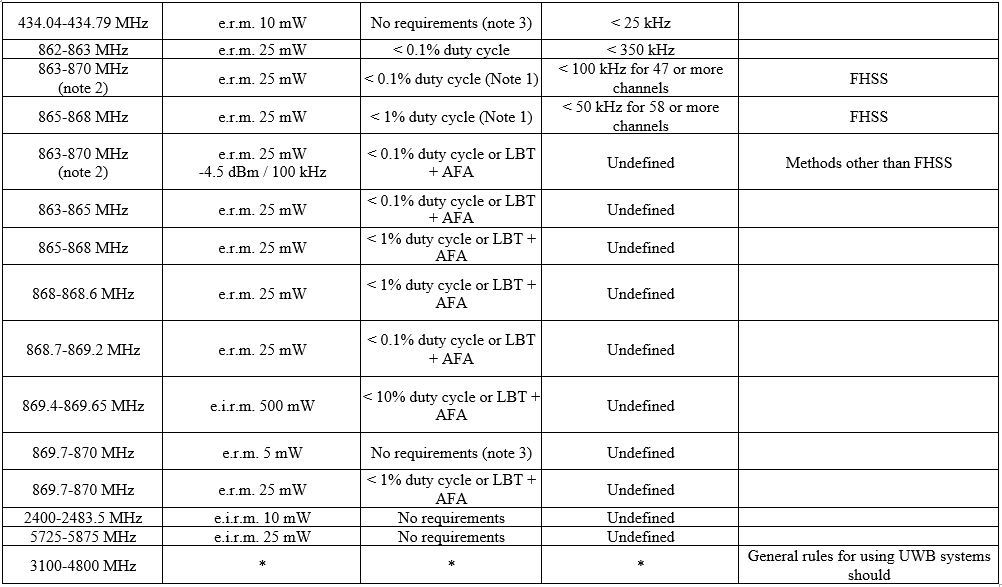 4.Transmission is allowed only in the bands 865.6-865.8 MHz, 866.2-866.4 MHz, 866.8-867.0 MHz and 867.4-867.6 MHz.